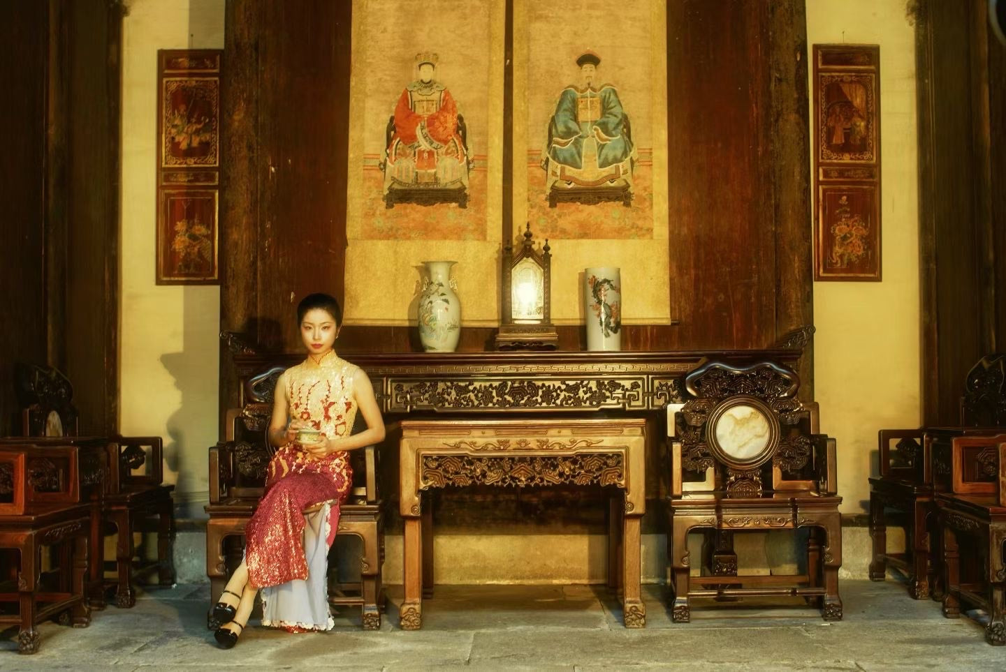 As the bamboo-frame lantern of Hongcun's Intangible Cultural Heritage lights up beside the Qipao, it is a mutual fulfillment between ancient artistry and bygone glamour—like a summer flower blooming in the twilight, brief yet pouring out all its light, making the splendor of the past and the breath of the present an eternal moment worth collecting. This Cheongsam is the final, magnificent note of a dazzling era, awaiting the next collector who appreciates its "Glamour of the Golden Age."