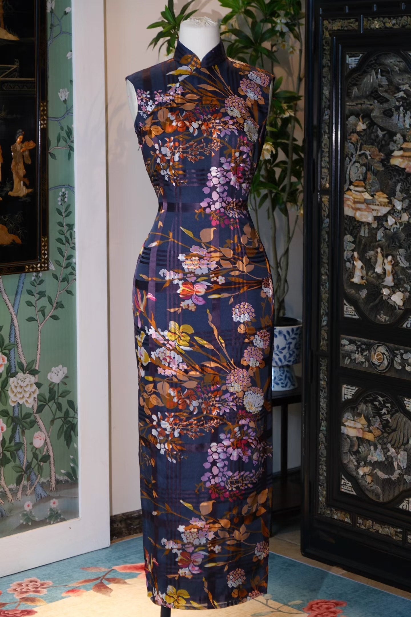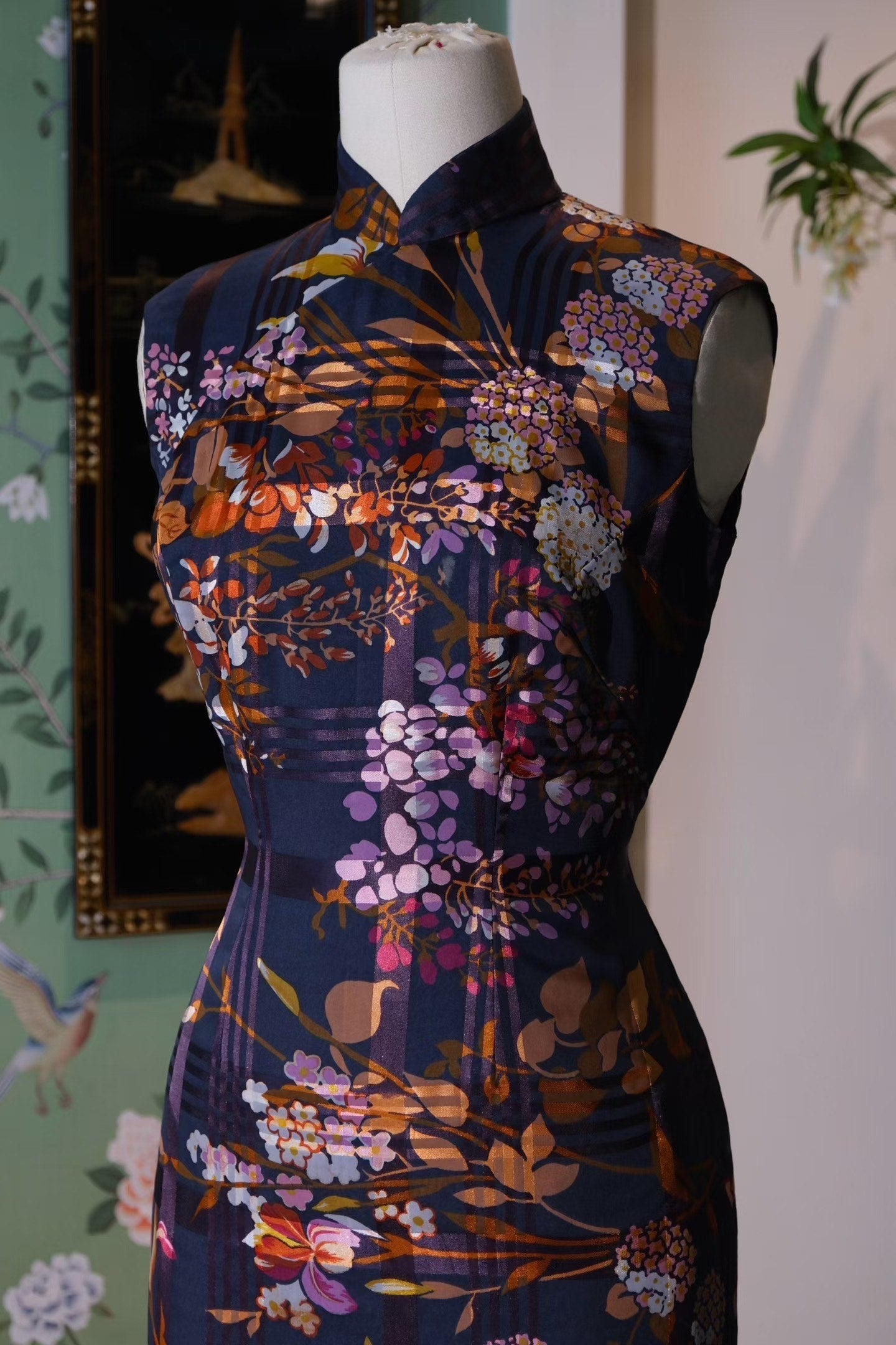 This Qipao possesses a deep, intoxicating beauty that belongs to the night, a masterpiece of romance perfected by time.