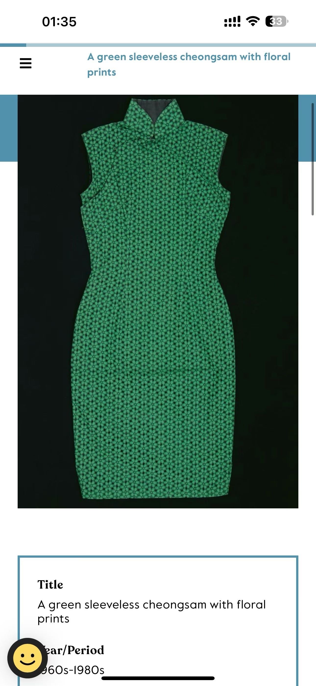 分享一件上世纪60年代的香港产古董旗袍。这件旗袍居然是新加坡国立博物馆同款!