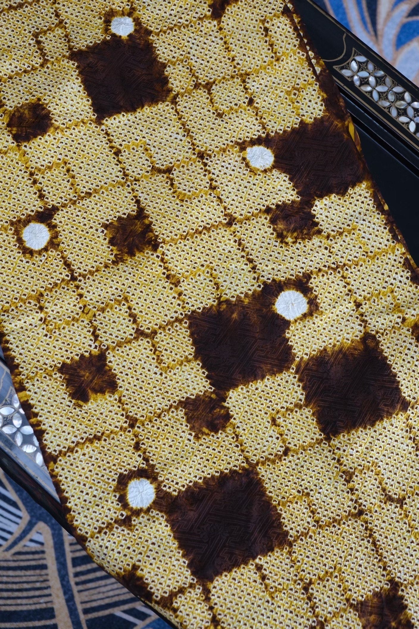 The second utilizes the Art Deco-inspired shibori (tie-dye) technique, flawlessly merging the classical Oriental beauty of Ruan Lingyu with the bold geometry of the decorative arts. It resembles the gentle sway of a qipao’s fringe under the moonlight, simultaneously revealing the crisp, modern lines of the era and the delicate, poignant charm of Old Shanghai.