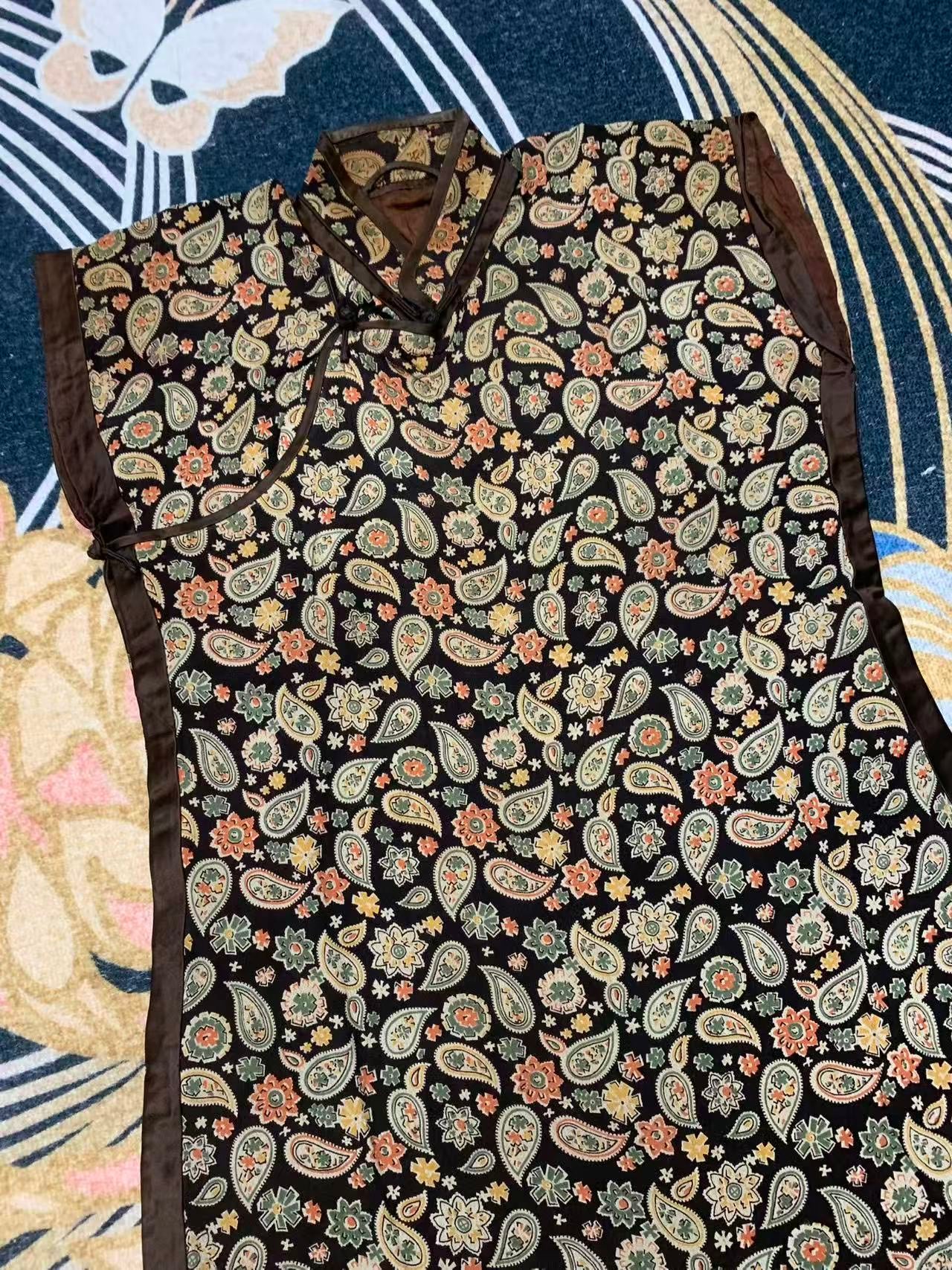 30年代:【民国遗珍】岁月沉香:古董宽绲无袖旗袍——黑底佩斯利涡纹 | 1930s : "Republican Era Relic" Timeless Fragrance: Antique Wide-Piping Sleeveless Cheongsam – Black Base Paisley Motif