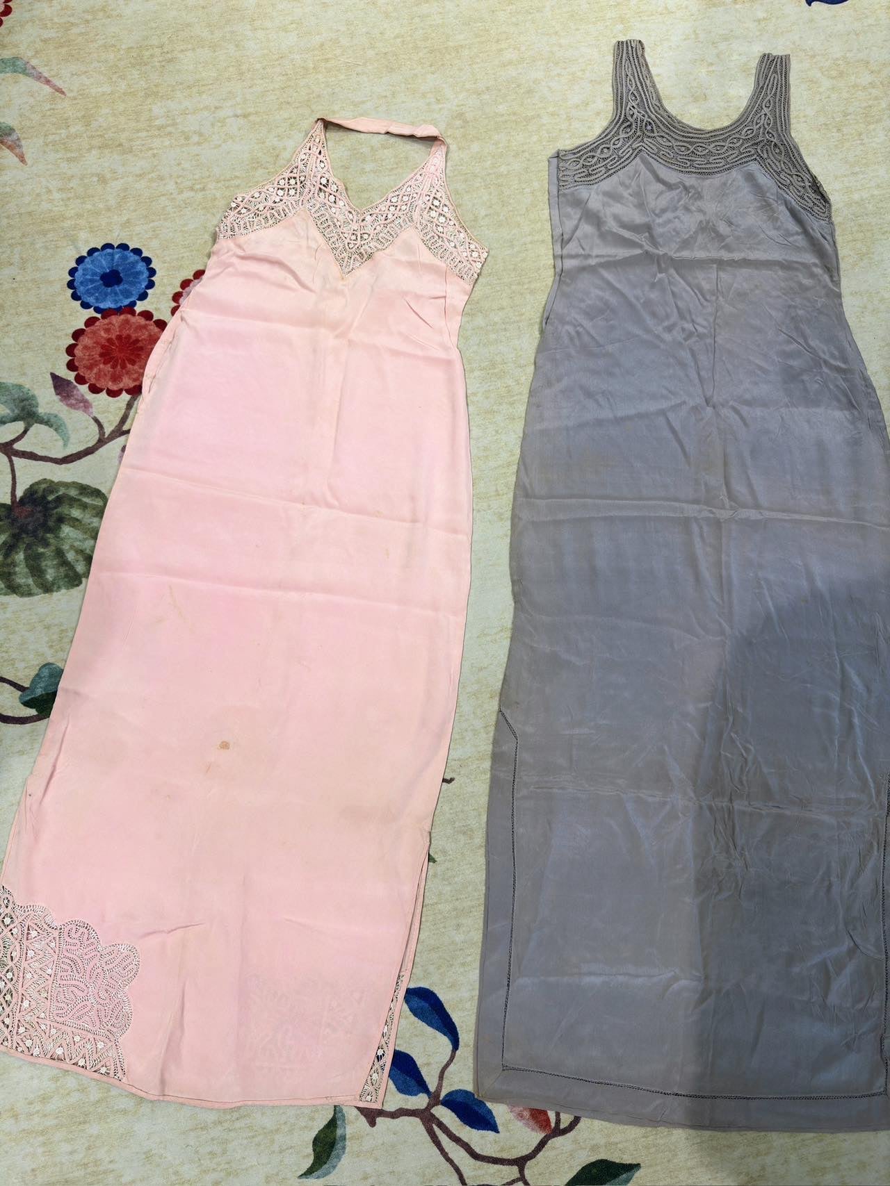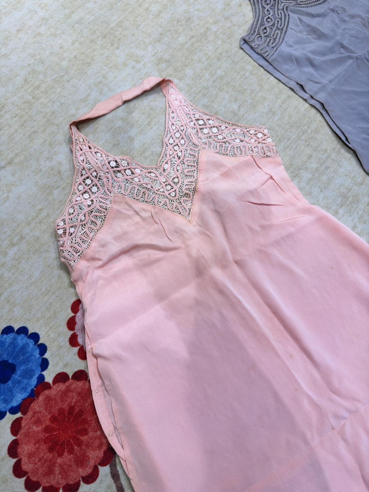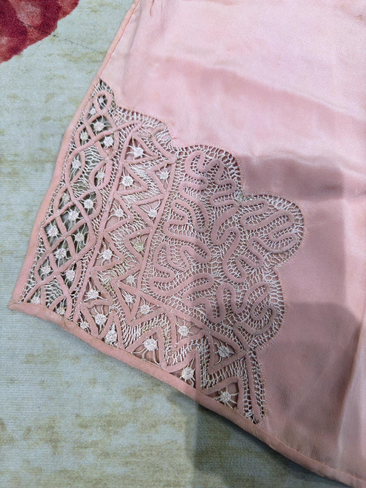 Vintage吊带式衬裙 - 二十世纪三十年代海派摩登肉粉色绸手工镂绣蕾丝衬裙 | Vintage Silk Slip - A 1930s Haipai Modern Flesh-Pink Silk Slip with Hand-Cutwork Lace