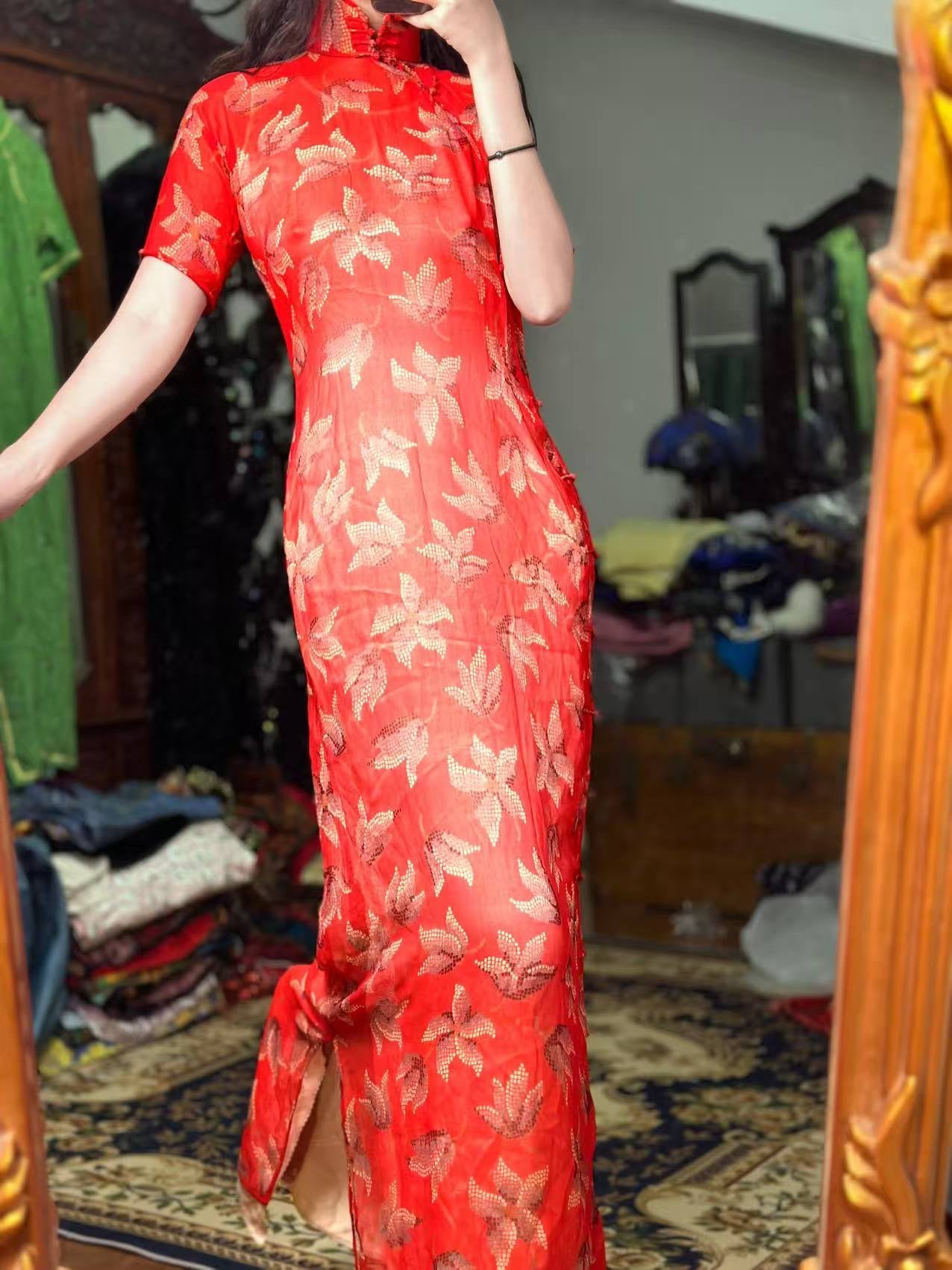 [III. Rarity and Craftsmanship] The scarcity of this piece lies in its exceptional preservation. The fragile nature of Georgette gauze makes it notoriously difficult to maintain; yet, the clarity of the print and the integrity of the fabric on this Qipao are exceedingly rare. Although 1930s Shanghai was the fashion hub of the Far East, silk Georgette remained a luxury import reserved for the aristocratic elite—let alone fabric printed with such complex multi-color tulip motifs. Within the series of Qipaos in the Jeff Chang Collection, this piece serves as a critical artifact for researching material innovation in Haipai attire, perfectly manifesting the "translucent, thin, and soft" aesthetic of gauze.