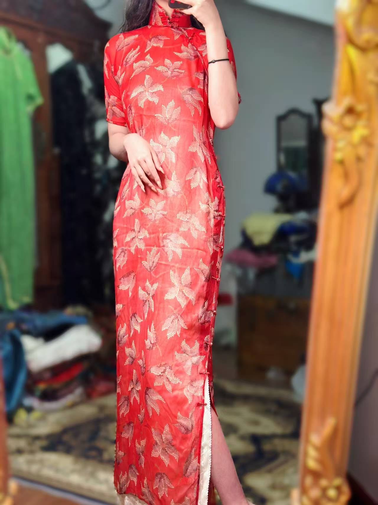 1930s Art Deco Tulip-Patterned Georgette Chiffon Qipao: A Fluid Poem of Haipai Modernity