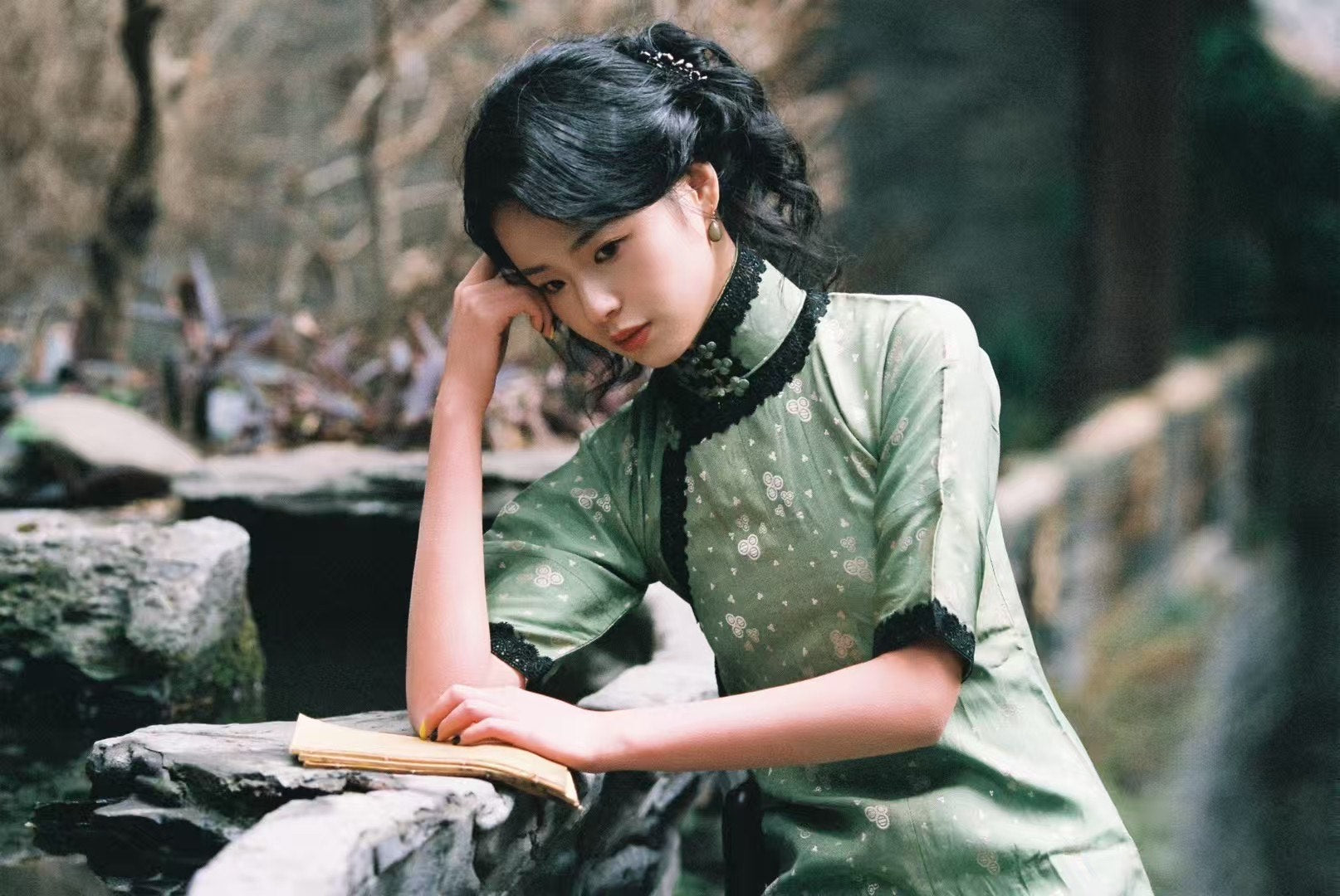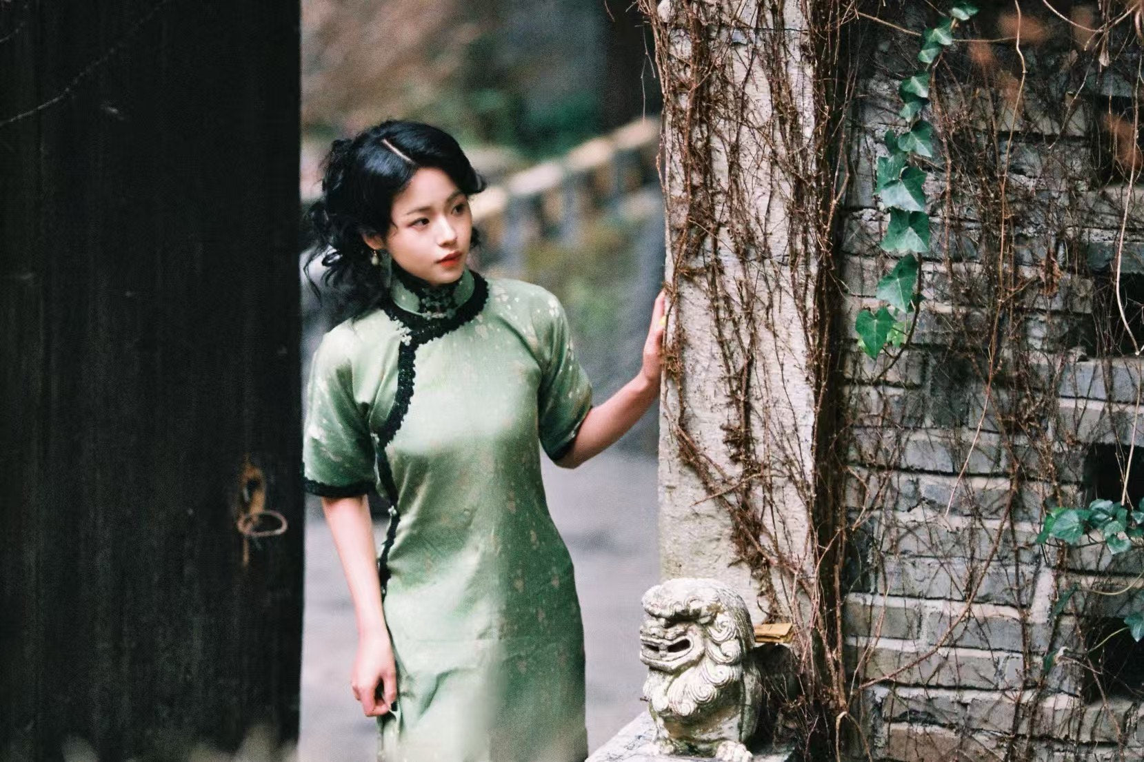 This "Emerald Charm Sleeves" Qipao is more than just a beautiful dress; it is a tangible witness to the social changes and cultural blending of its era. It carries the splendid, lingering dreams of Shanghai's "ten-mile foreign settlement" and chronicles the elegant transformation of women from tradition to modernity. Whether paired with a pearl necklace or a simple jade hairpin, it will perfectly showcase the wearer's blend of classic charm and modern flair. In an age that valued everyday sartorial elegance, a Qipao this comfortable, stylish, and infused with artistic spirit would undoubtedly have been an indispensable treasure in the wardrobe of any renowned socialite. Today, as an antique, it has travelled through the tunnel of time, telling us stories of old days preserved by the years, and of an eternal Eastern aesthetic.