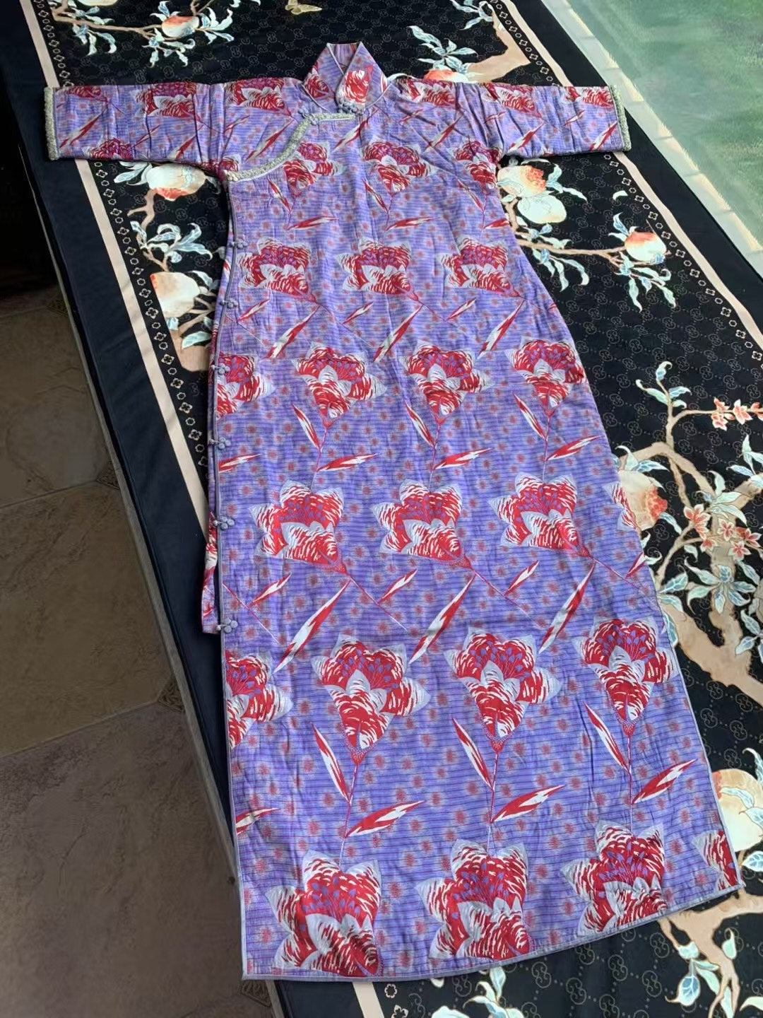 Sharing a matching antique floor-length Qipao from the 1930s Republic of China era, featuring an Art Deco design and a lambswool lining, identical to one worn by Wanyan Litongji (also known as Jin Moyu, a famous late-Qing dynasty noblewoman).