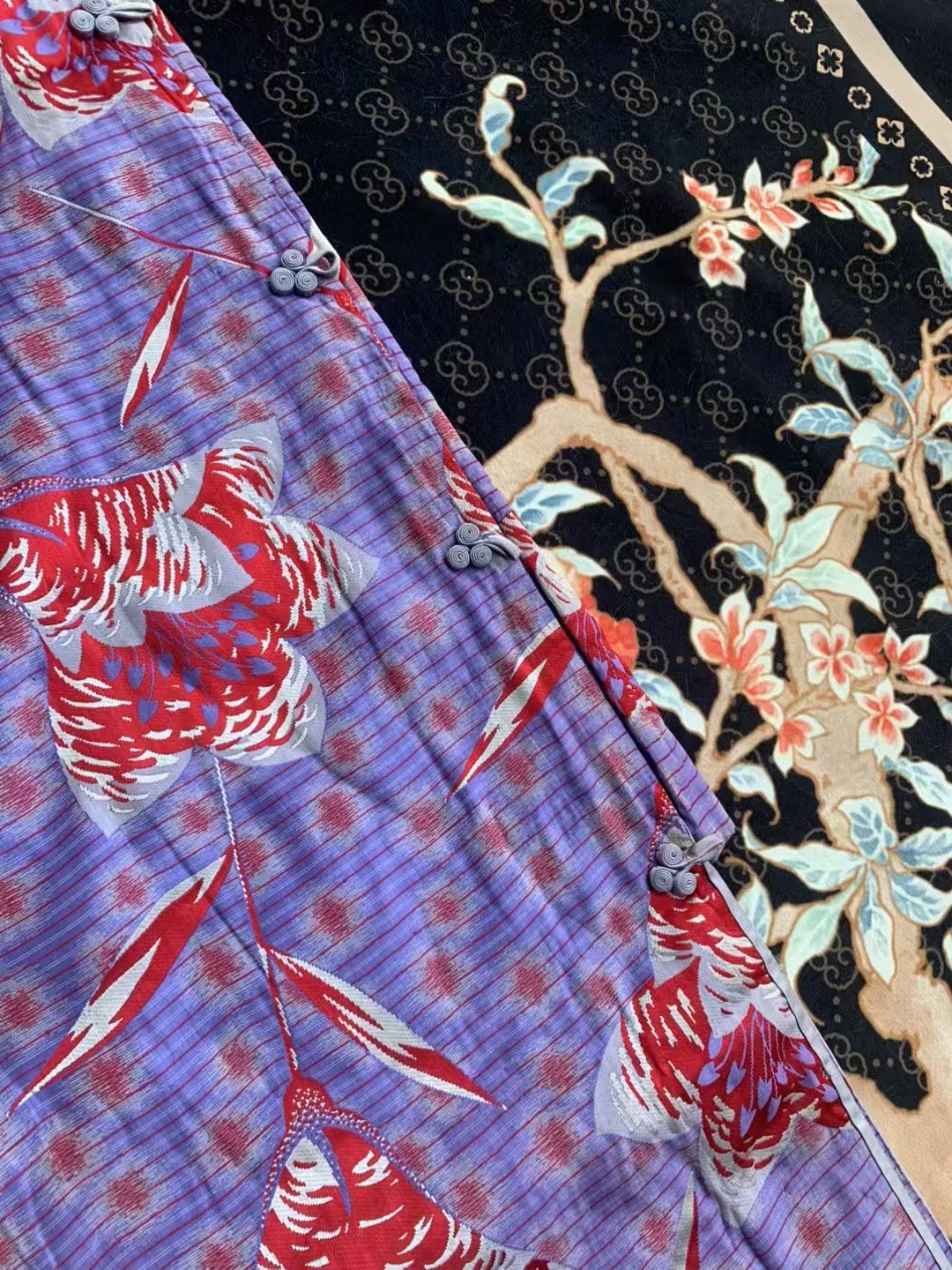 它不仅仅是一件旗袍,更是一件会讲故事的移动艺术品,重现老上海滩在**‘紫醉金迷’**下对西方装饰艺术和东方优雅的完美融合,让您在人群中独树一帜。