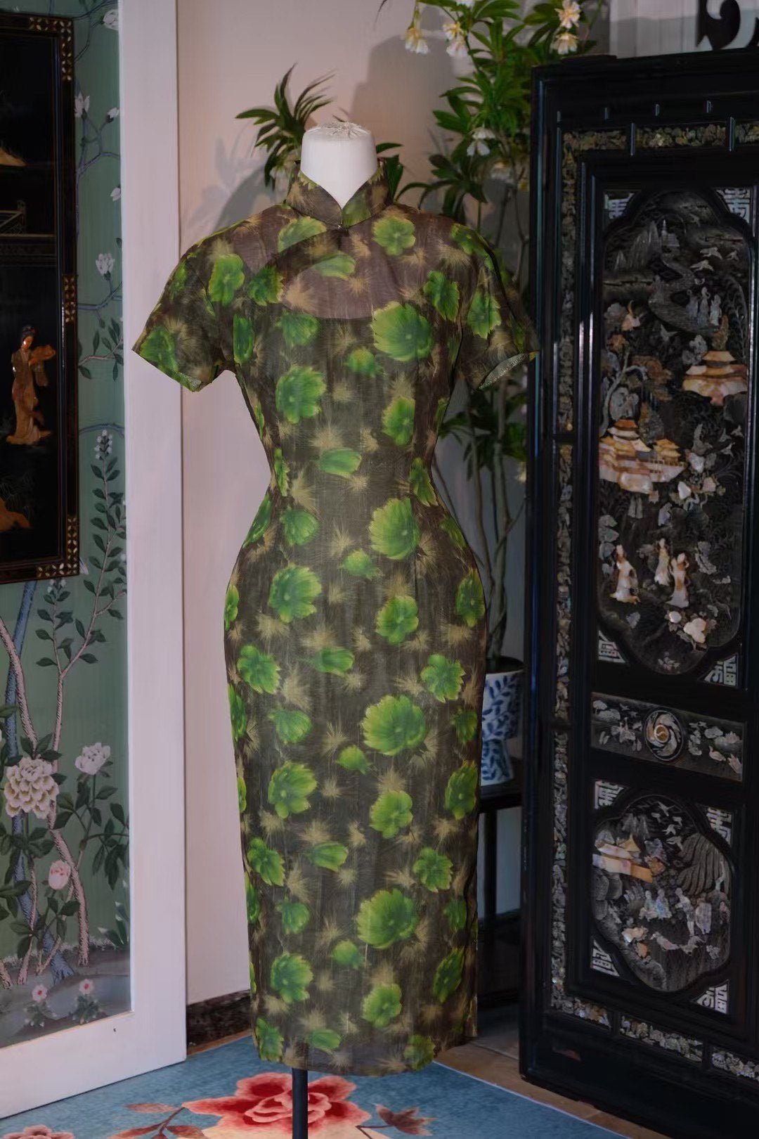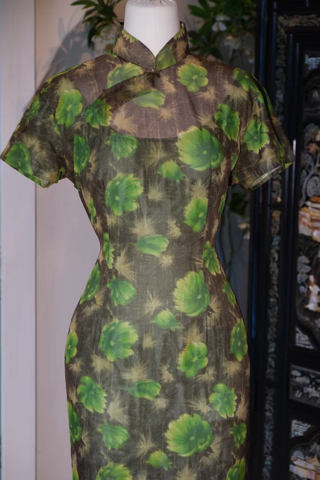 60年代 -《新加坡国立博物馆典藏·幽梦深潭·诗意捕捉》—— 幽邃墨绿薄纱,朦胧透视短袖旗袍 | 1960s - "National Museum of Singapore Heritage · Ethereal Deep Pool · Poetic Capture" — The Sheer, Short-Sleeved Cheongsam of Deep Emerald Silk