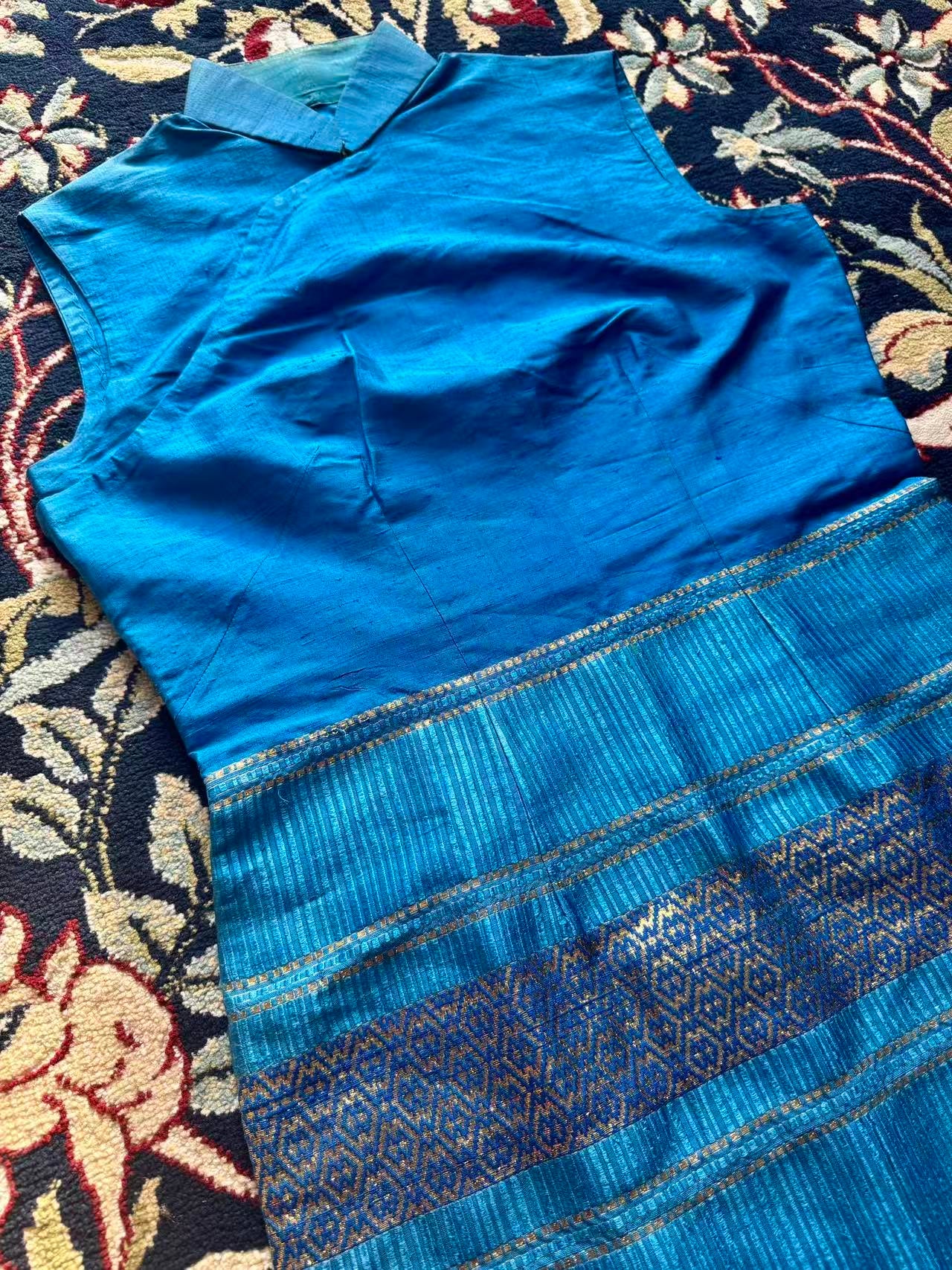 [III. Fabric: The Textural Contrast of Double-Cousin Silk] The fabric selected is Double-Cousin Silk (a variety of Shantung/Dupioni silk), using wild tussah silk for the warp and mulberry silk for the weft to achieve a texture that is simultaneously rugged and smooth. The garment features natural "slubs" (nubby textures) that contrast with the smoothness of the gold-woven patterns. This juxtaposition of "coarse and slick" is a hallmark characteristic of 1950s Hong Kong Qipaos.