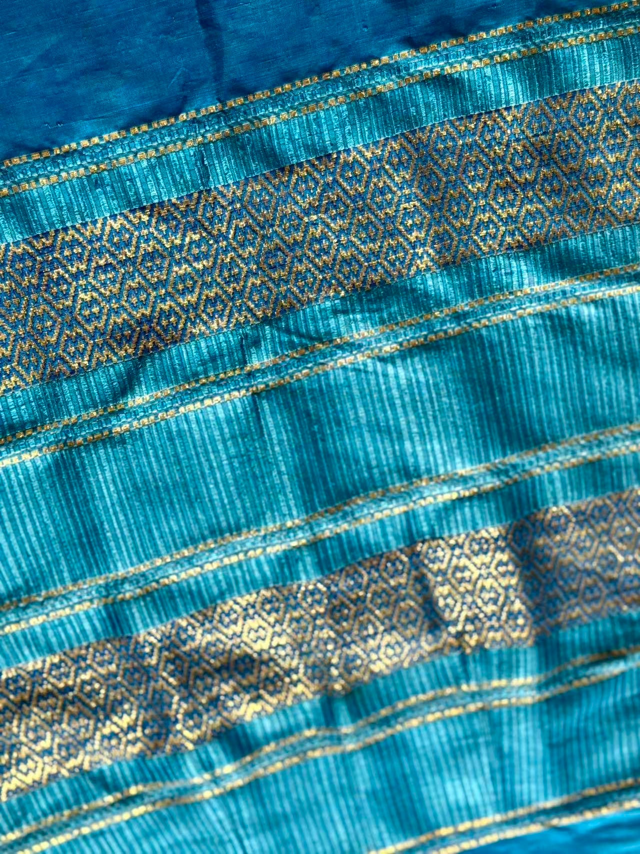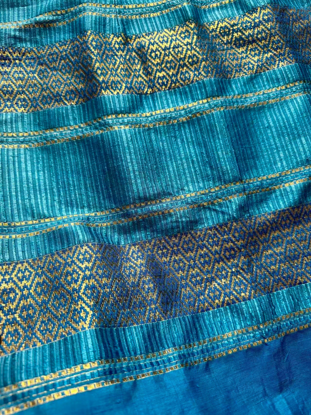 [VI. Palette: Lapis Blue and Gilded Brilliance] The primary color of the gown is "Lapis Lazuli Blue." This hue requires 12 cycles of indigo immersion to achieve, sharing its origin with the lapis lazuli pigments found in the Dunhuang murals, symbolizing "Nobility and Eternity." The warm tone of the gold threads contrasts with the cool blue, adhering to the color principle in the Artificers' Record (Kao Gong Ji): "When blue and gold wrestle, brilliance emerges."