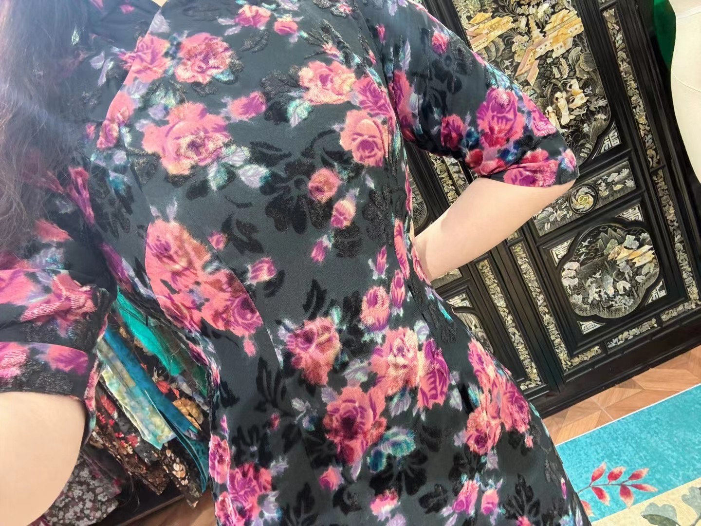 60年代 - 伯爵玫瑰的暗夜咏叹:Vintage 60s 烧花丝绒古董港袍 | 1960s - The Midnight Aria of Earl Roses: Vintage 60s Devoré Velvet Antique Qipao