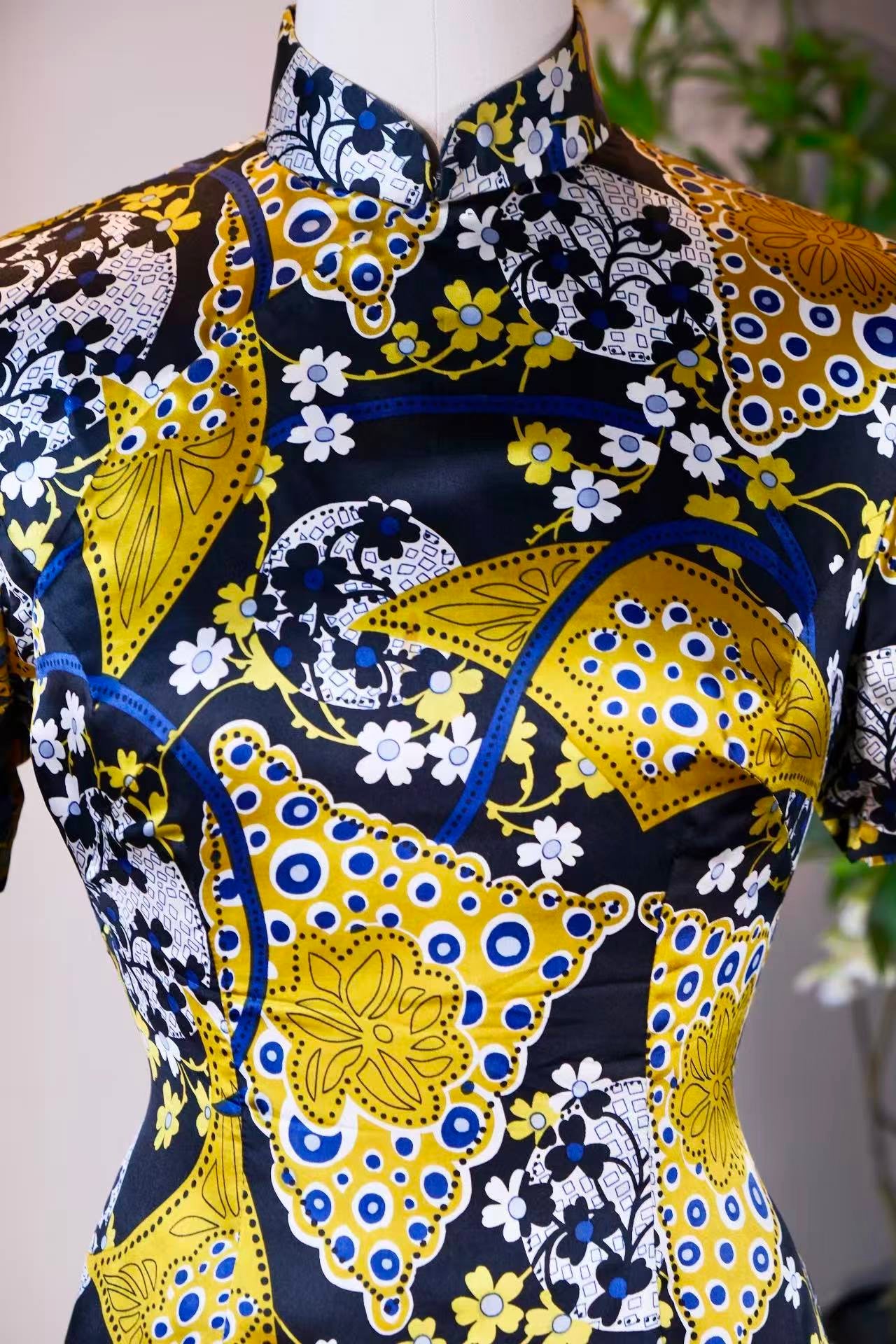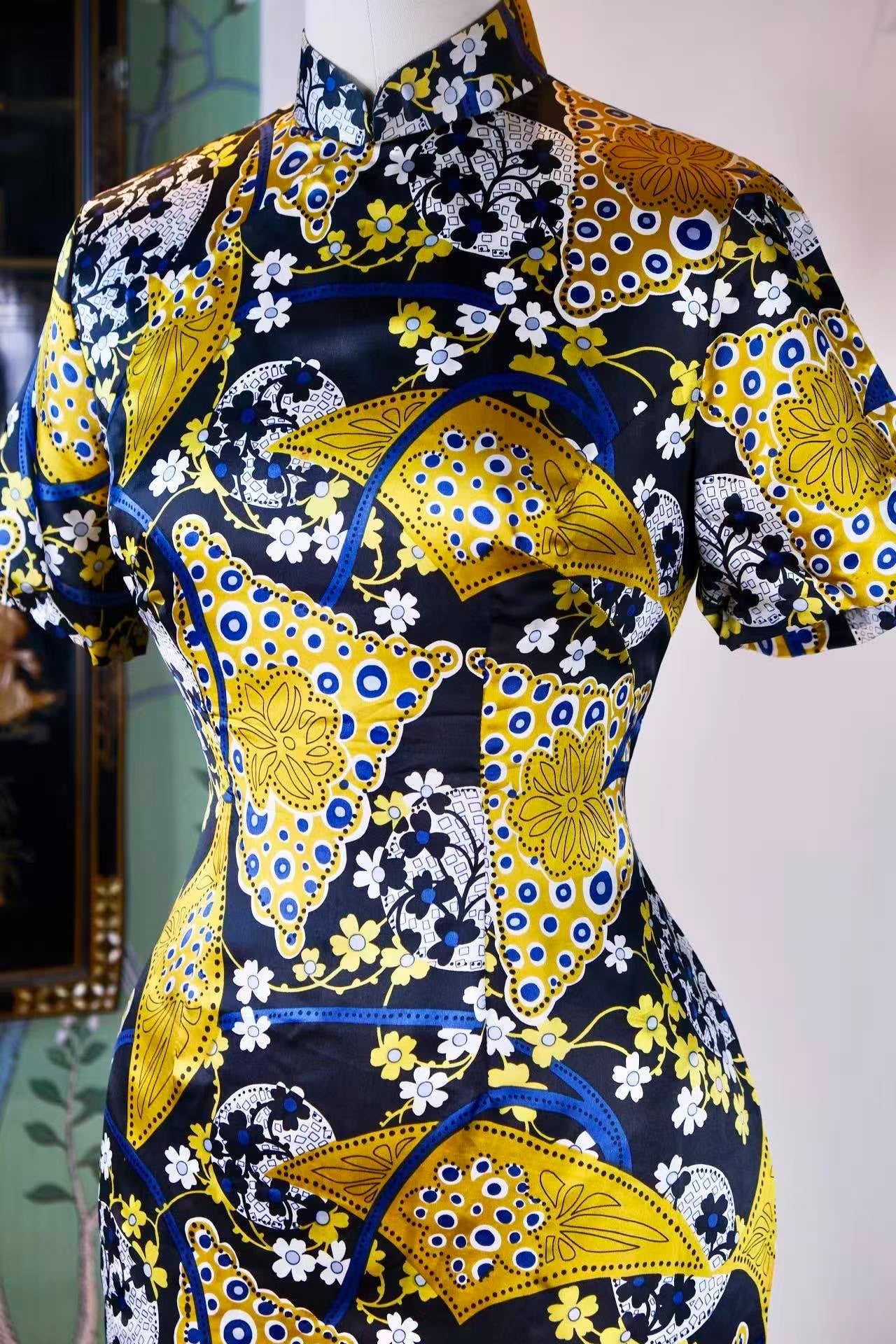 六十年代和风印花台湾古董旗袍:织锦上的东方美学史诗