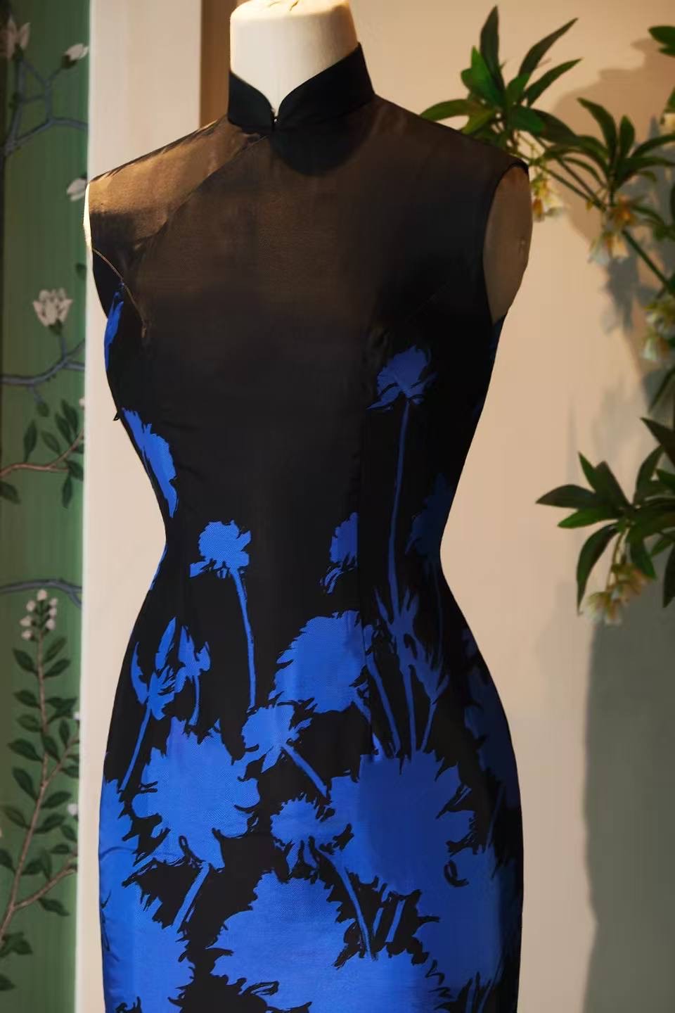 当旗袍在时代浪潮中演变为符号,此件作品以“蓝墨对话”留存的,