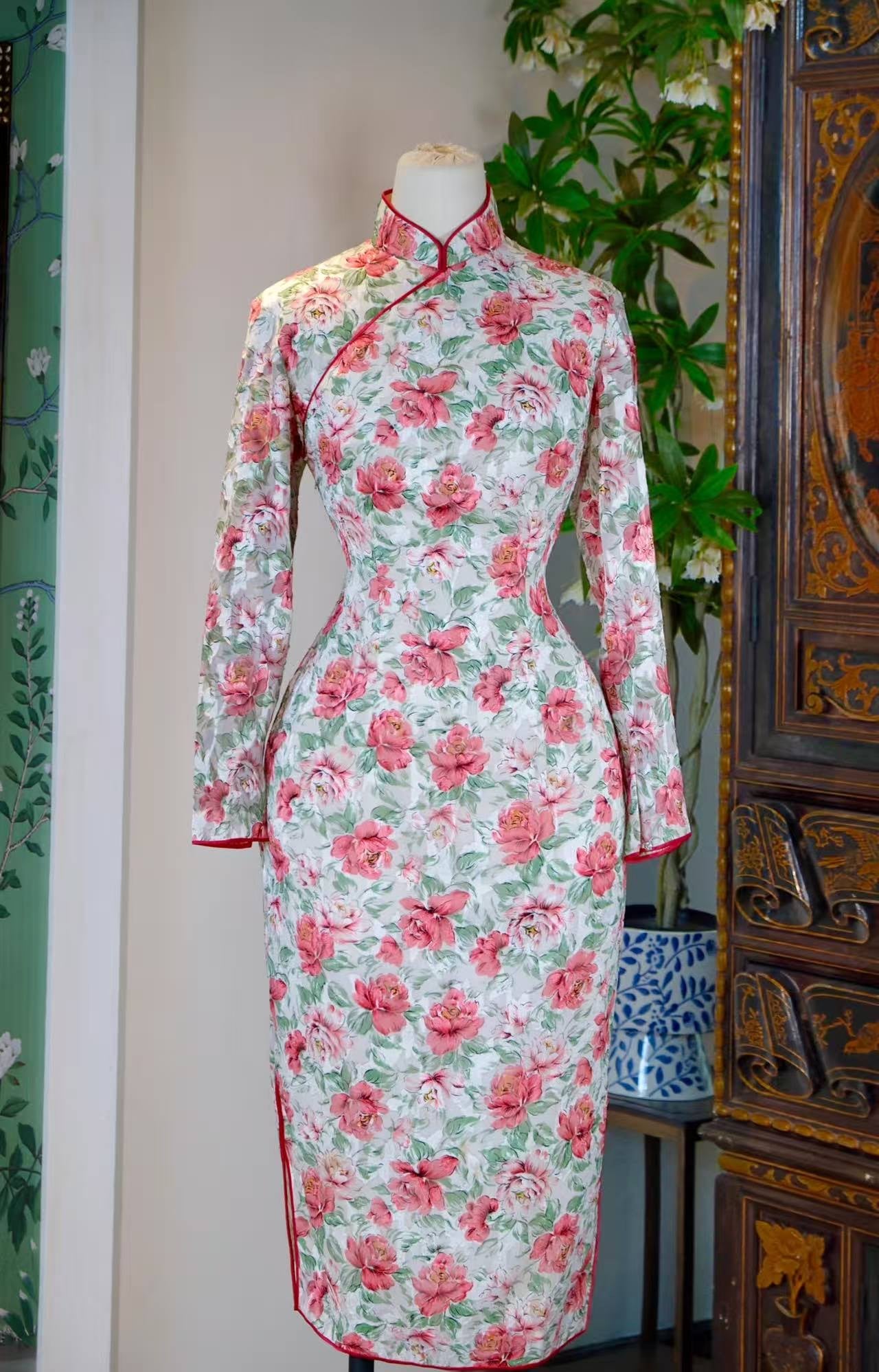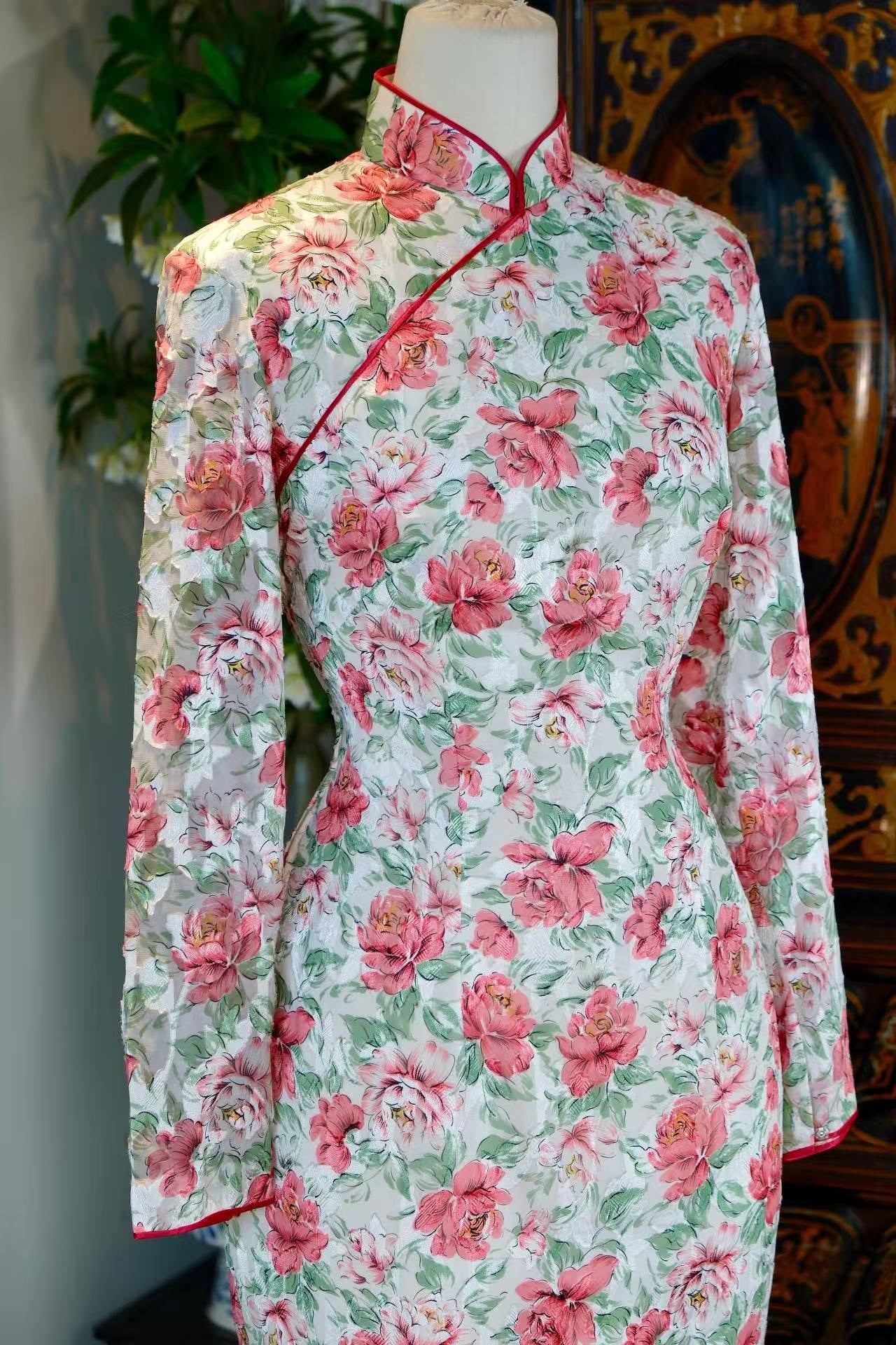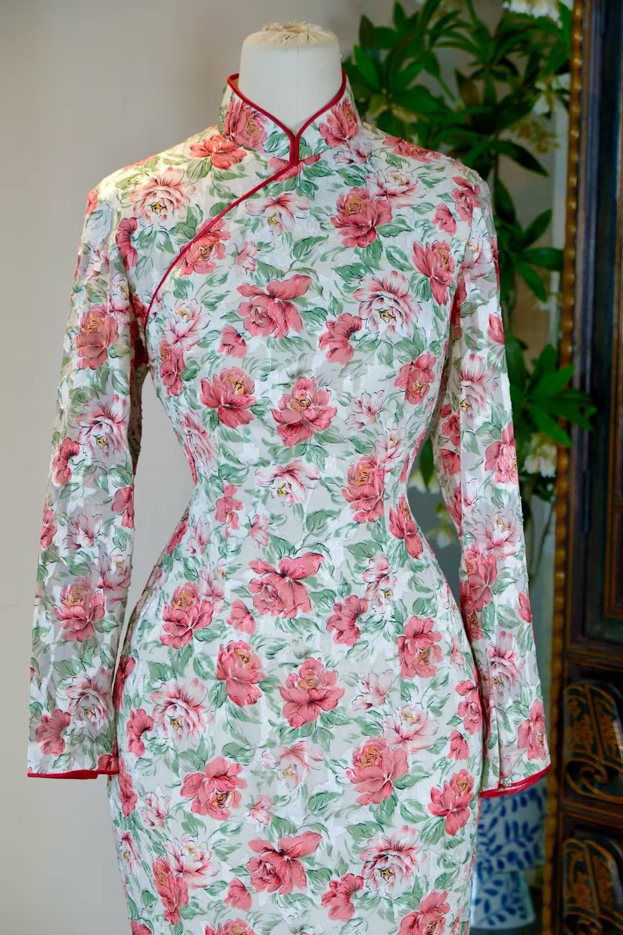 The value of this cheongsam far exceeds the simple definition of "clothing." It is a three-dimensional representation of the Lingnan School's brushwork, a masterpiece of Nanyang tailoring skills, and a microscopic sample of 1960s Taiwanese social culture. As fingertips glide over the chiffon's hidden pattern, one seems to touch the breathing of women from that era—who, amidst the shadows of peonies, transformed Oriental aesthetics into a single, eternal spring light.