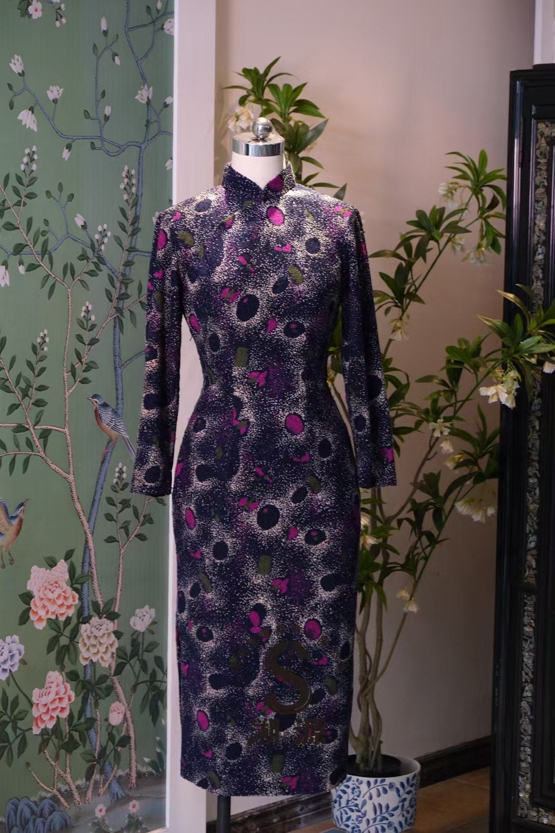 The charm of this Qipao lies in its transformative use of traditional long sleeves and mandarin collar tailoring. While paying homage to classic Eastern lines, it is injected with a powerful Western modernist aesthetic. The elongated lines and sleek silhouette, characteristic of the Hong Kong-style Qipao, highlight feminine grace without sacrificing reserved elegance. It represents the avant-garde and innovation of an era—your unique choice for collecting history and showcasing independent personality. Wearing it, you own a portable piece of art that can traverse between the classical and the contemporary.