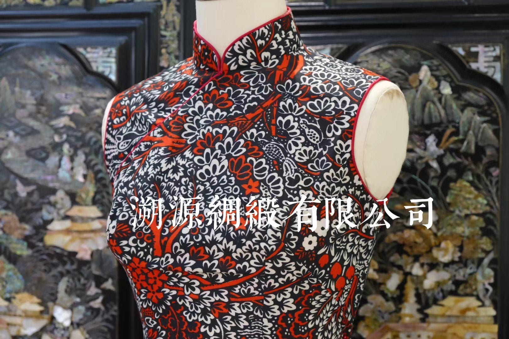 视觉的盛宴:六十年代高对比度黑红白三色抽象花卉古董旗袍。