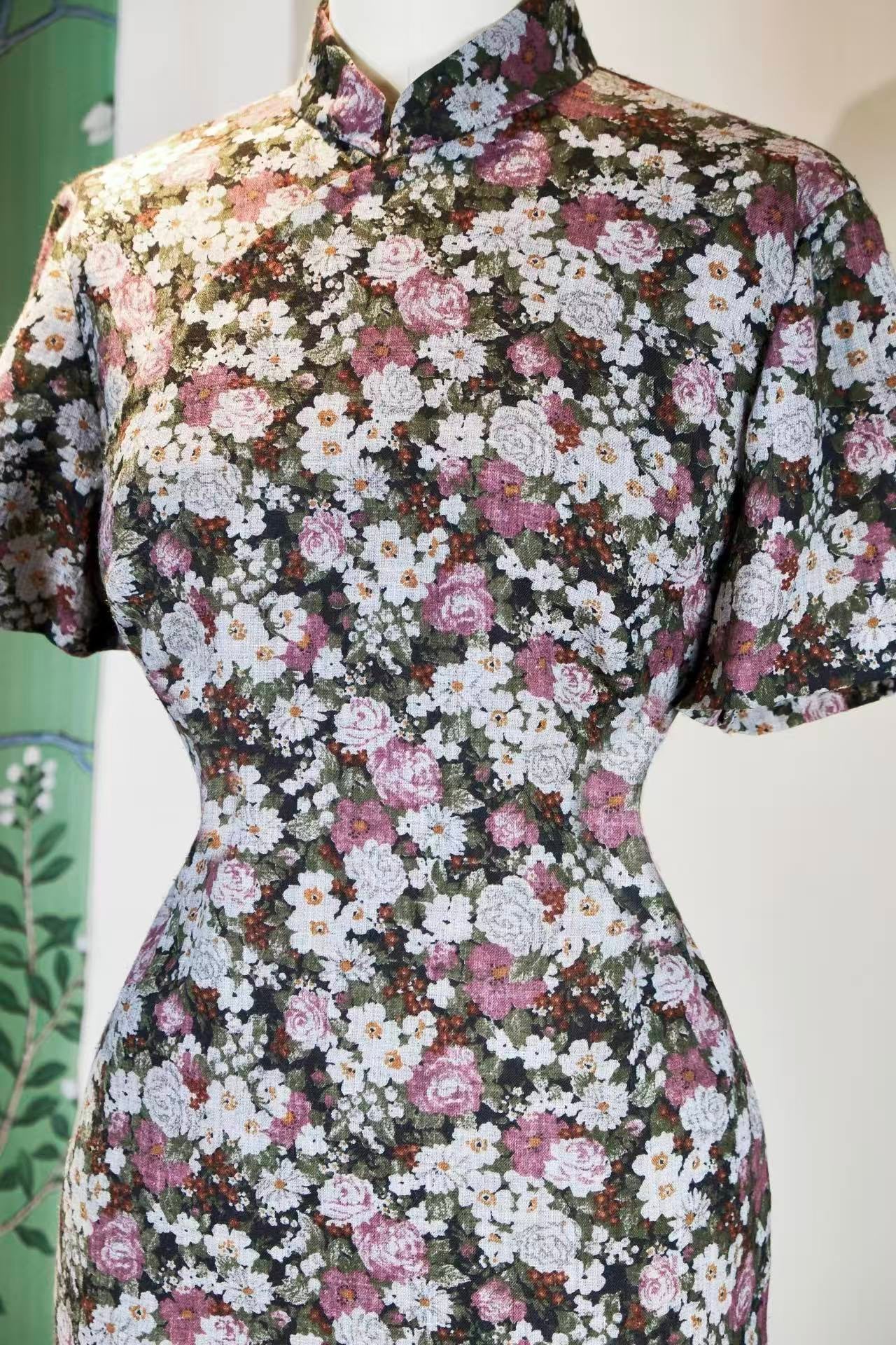 六十年代亚麻印花古董旗袍:法式田园与东方风韵的百年邂逅