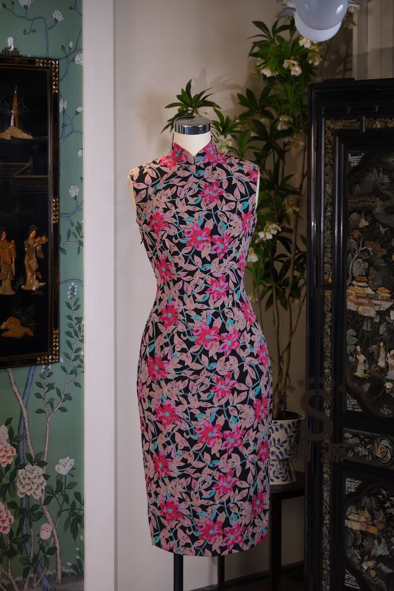 此款Vintage 60年代无袖旗袍,完美捕捉了那个时代香港的摩登与魅力。它如同一首流动的诗,一幅热烈的画,将传统旗袍的优雅身韵与西方时装的廓形剪裁融为一体。