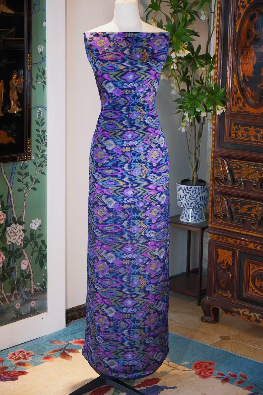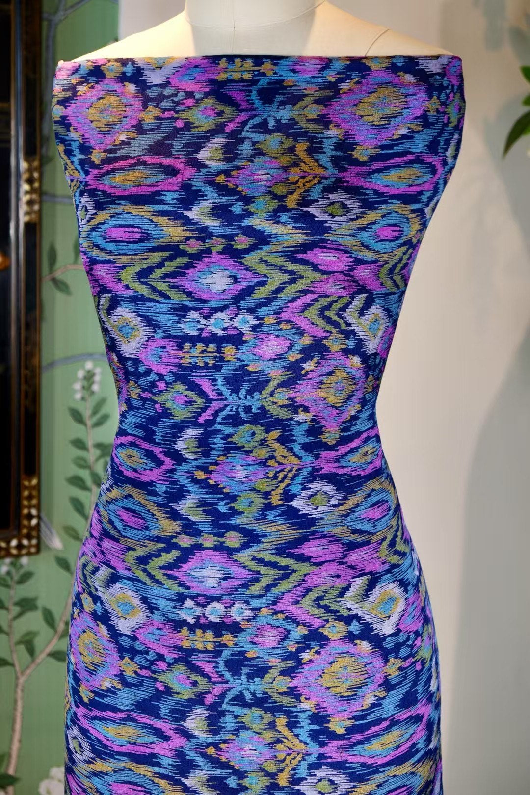 《幻彩霓虹·云端图腾》—— 纯丝数码艺术伊卡特(Ikat)纹样创意面料